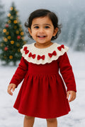 Baby Christmas Dress – Red Knitted Winter Dress with Bows | Soft Cotton-Poly Blend