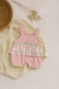 Baby Girl Pink Tencel Romper with Lace & Tassel Detailing