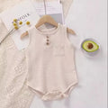 Baby Knitted Cotton Romper – 100% Cotton Sleeveless Bodysuit with Button Detail