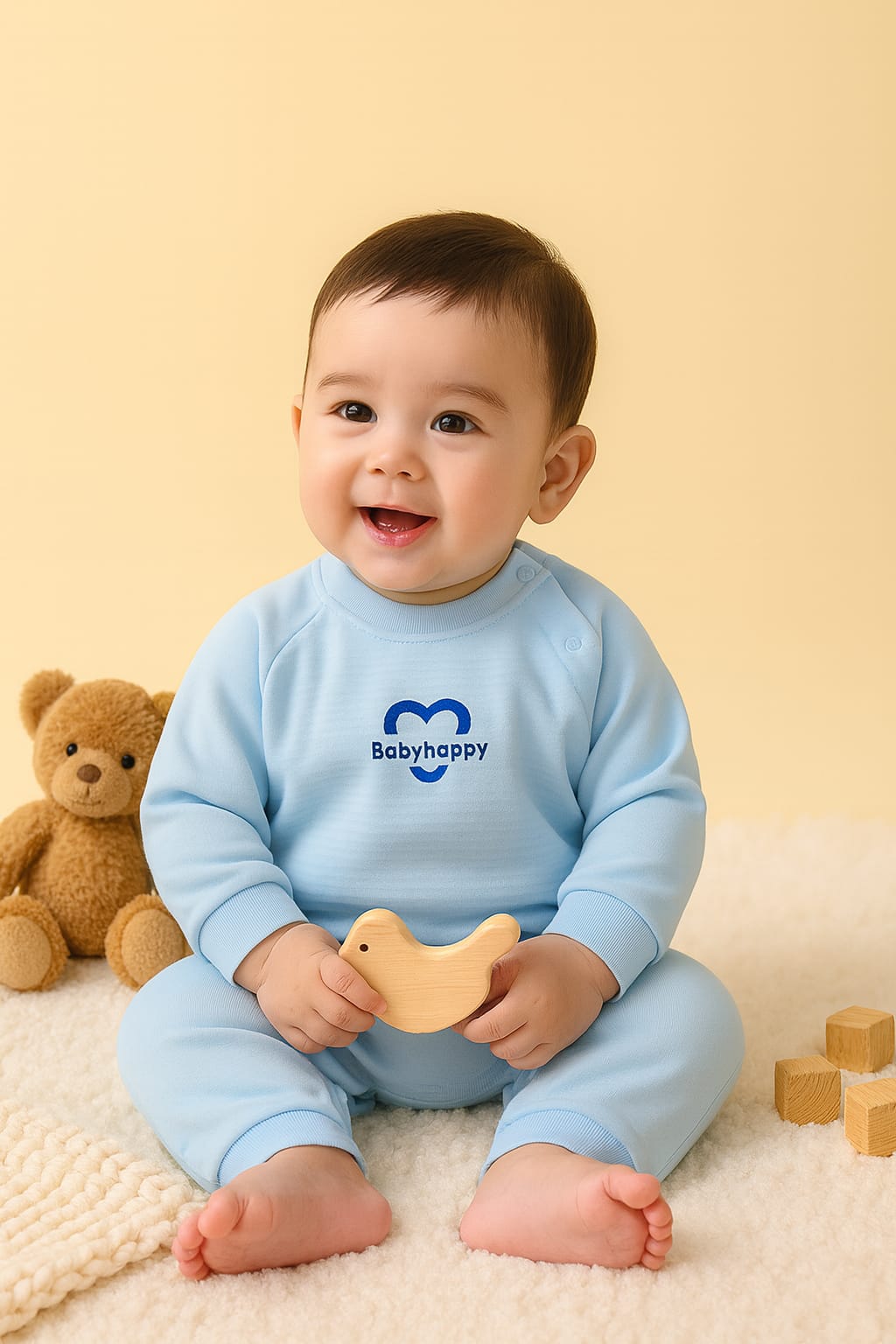 Gentle pastel blue shade with Babyhappy embroidery