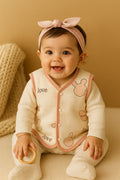 Keep your little one cozy and stylish with this baby woolen cotton vest. Made from soft cotton with a woolen knit texture, it features a playful bear print and front snap button closure for easy wear. Lightweight yet warm, this vest is perfect for layering during cooler days.