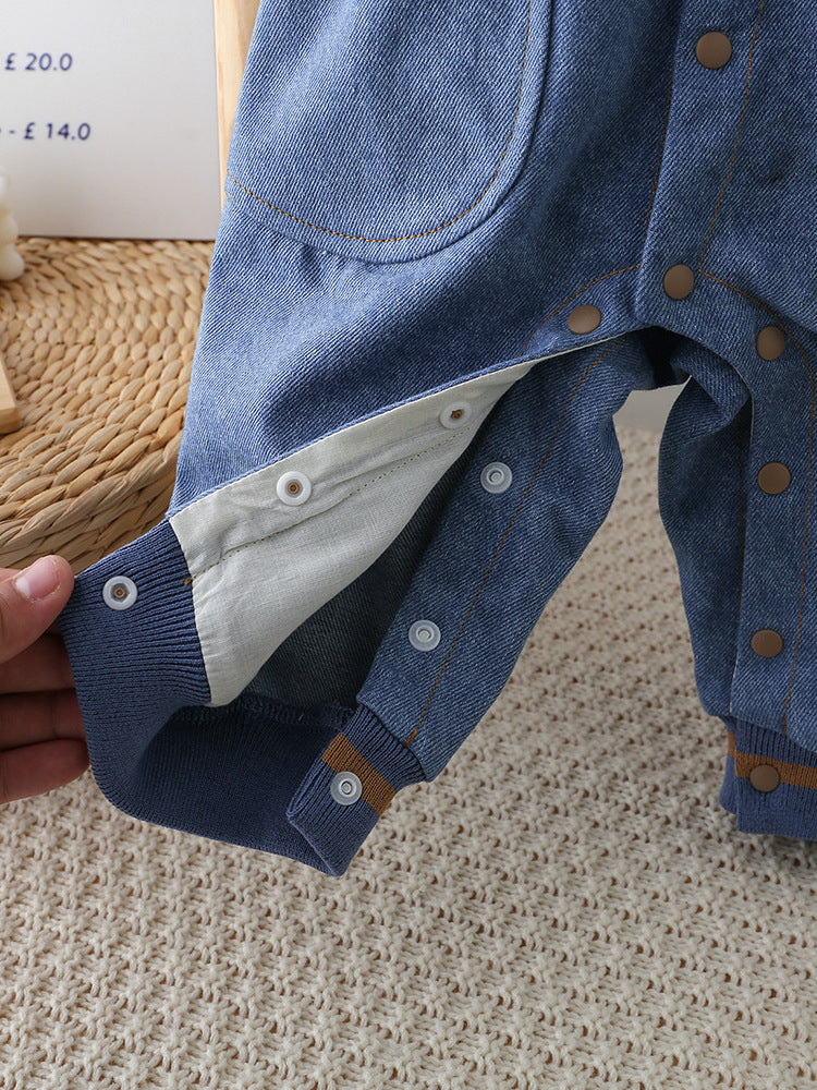 Bear Design Denim-Style Baby Romper with Ears & Tail
