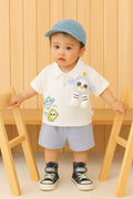 Cartoon Embroidered Polo T-Shirt with Blue Shorts – 100% Cotton Baby Outfit Set