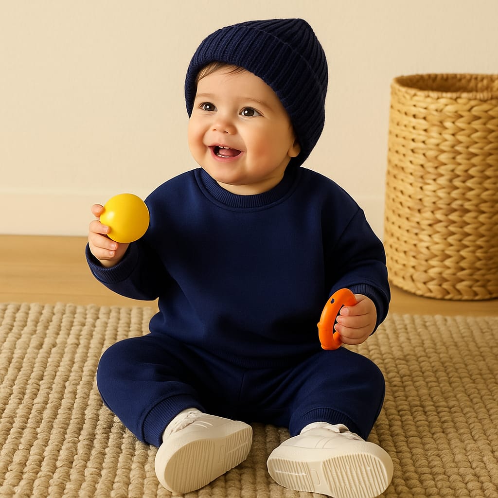 Keep your little one warm and stylish with this Cotton Baby Tracksuit Set. Featuring a soft navy sweatshirt and matching jogger pants, this outfit is perfect for daily wear, outdoor play, or cozy loungewear.