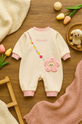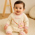 Floral Appliqué Baby Romper with Long Sleeves & Snap Closure