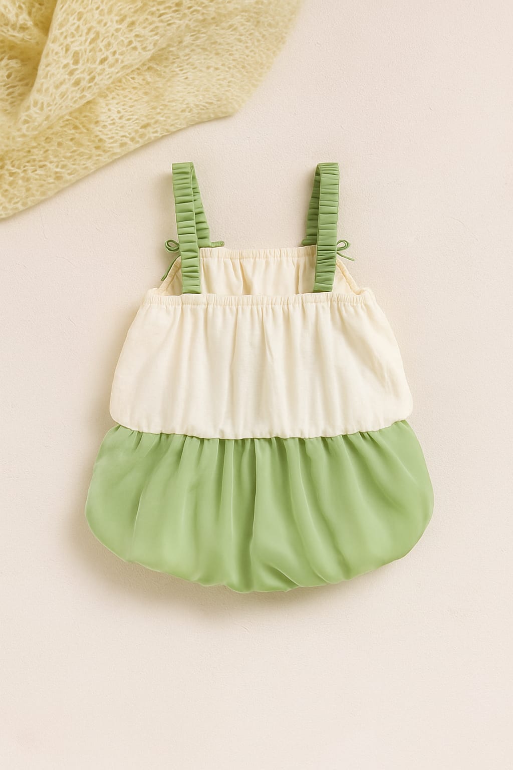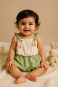 Floral Inspired Baby Romper Dress with Tulip Shoulder Straps & Layered Skirt