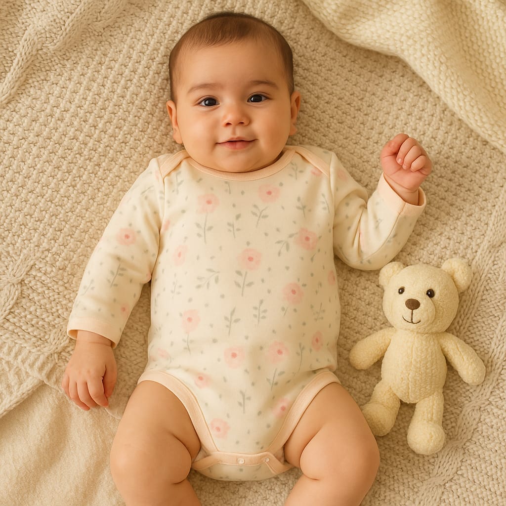 Floral Print Baby Bodysuit – 100% Cotton, Long Sleeve Soft Onesie for Infants