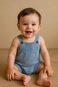 Keep your baby cozy and stylish with this knitted woolen romper, made from 100% cotton for softness and warmth. Designed with shoulder straps and button closures for easy wear, this romper ensures comfort for everyday use and special outings. A versatile unisex piece, ideal for layering in cooler seasons.
