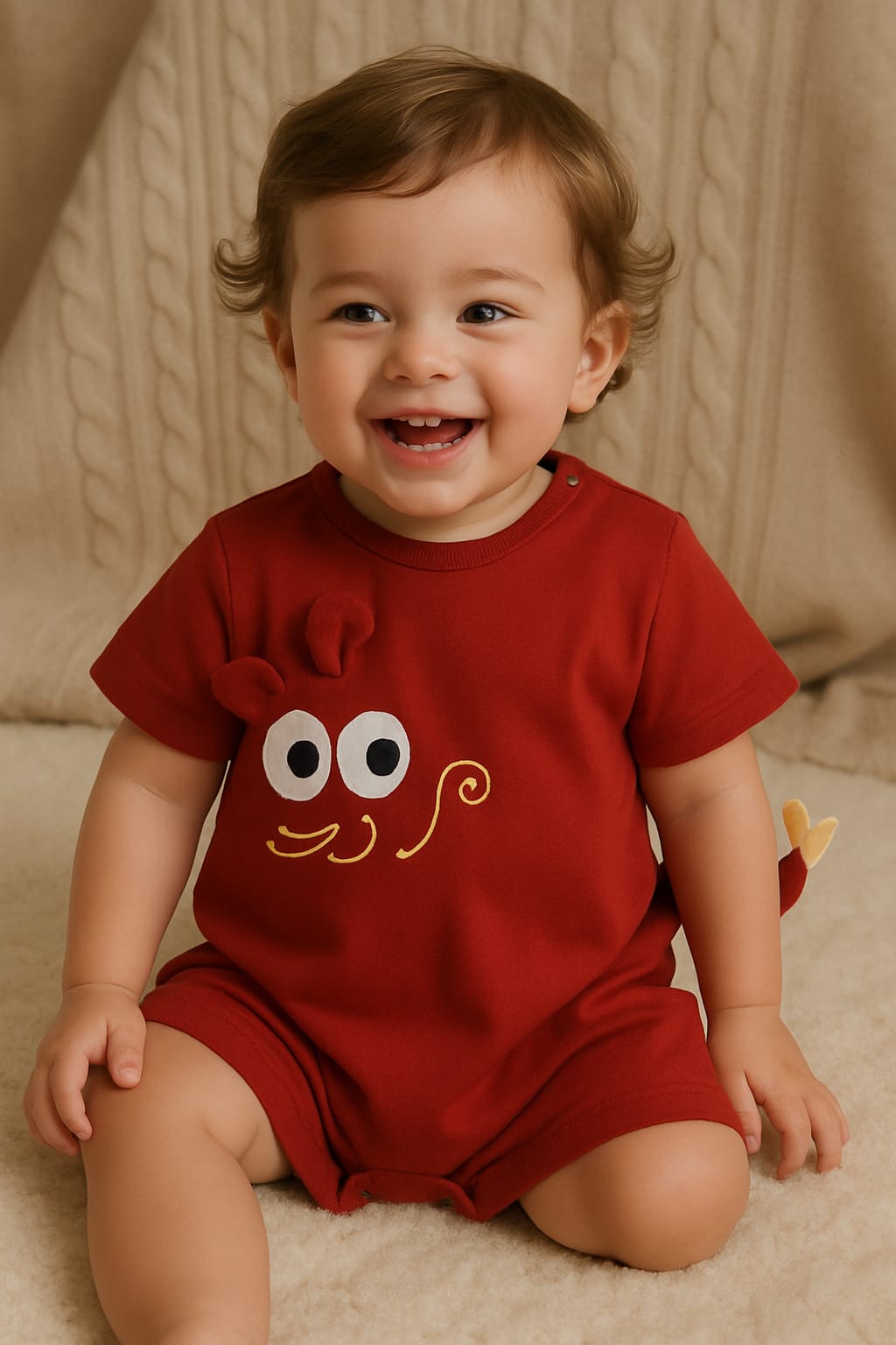 Bring playful vibes to your baby’s wardrobe with this Red Cartoon Lobster Baby Romper. Featuring a fun lobster-inspired design with 3D details, this romper is perfect for adding a cheerful touch to everyday wear. Made from 100% soft cotton, it ensures breathability, comfort, and gentle care on delicate skin. Snap buttons at the shoulder and bottom allow for easy dressing and quick diaper changes. A delightful choice for playtime, casual outings, or gifting.